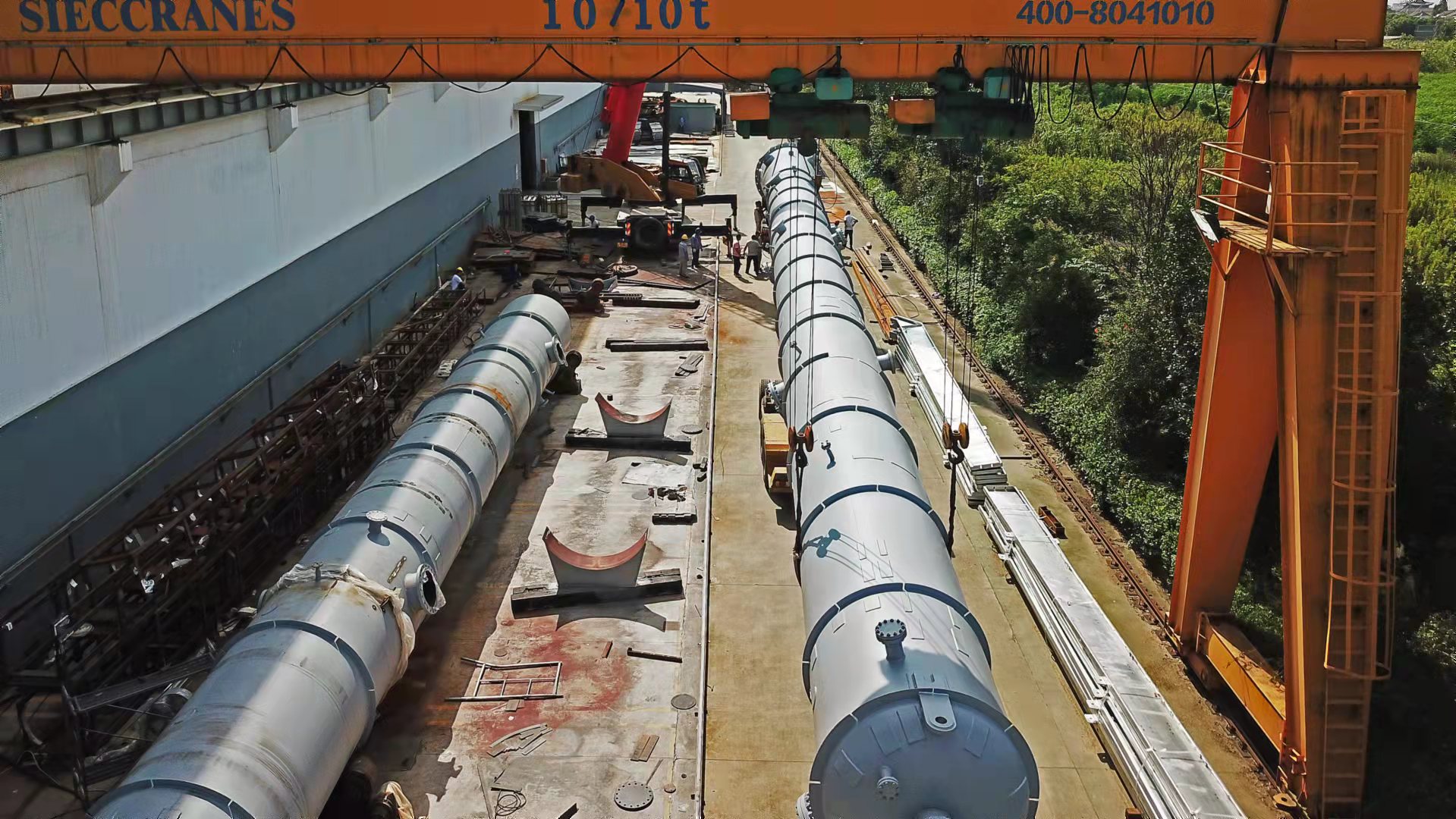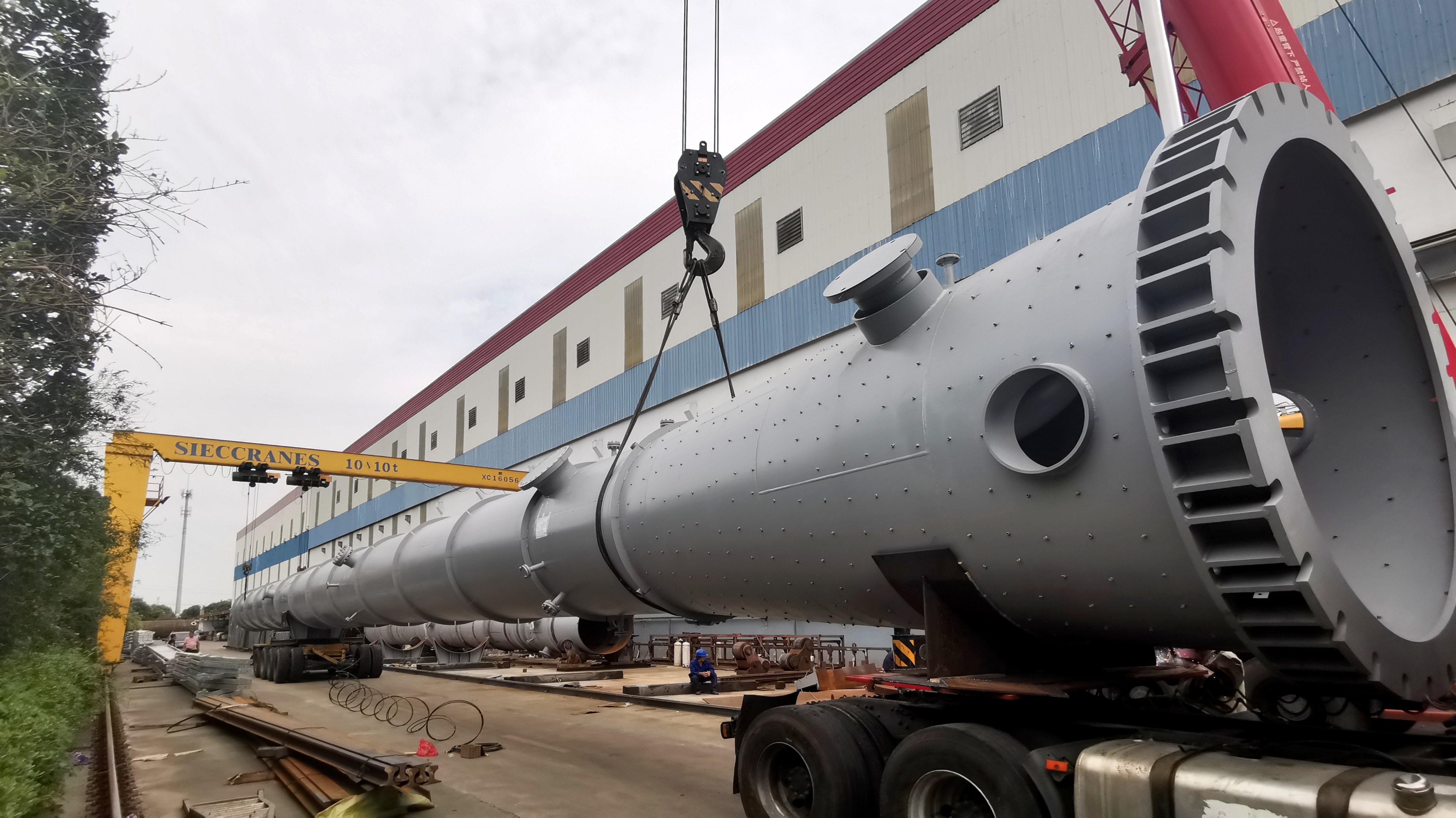 本次合盛硅業(yè)超大超長容器的成功交付彰顯了美克斯機(jī)械公司承接大型設(shè)備的制造能力和優(yōu)質(zhì)的服務(wù)水平。美克斯機(jī)械公司是一家集設(shè)計(jì)、制造于一體的重裝備企業(yè),占地面積4萬平方米,現(xiàn)有員工近180人,大型先進(jìn)設(shè)備多達(dá)上百臺(套),隨著廠區(qū)正在建設(shè)的500T碼頭的投入使用,必將為公司實(shí)現(xiàn)最終愿景而添力。